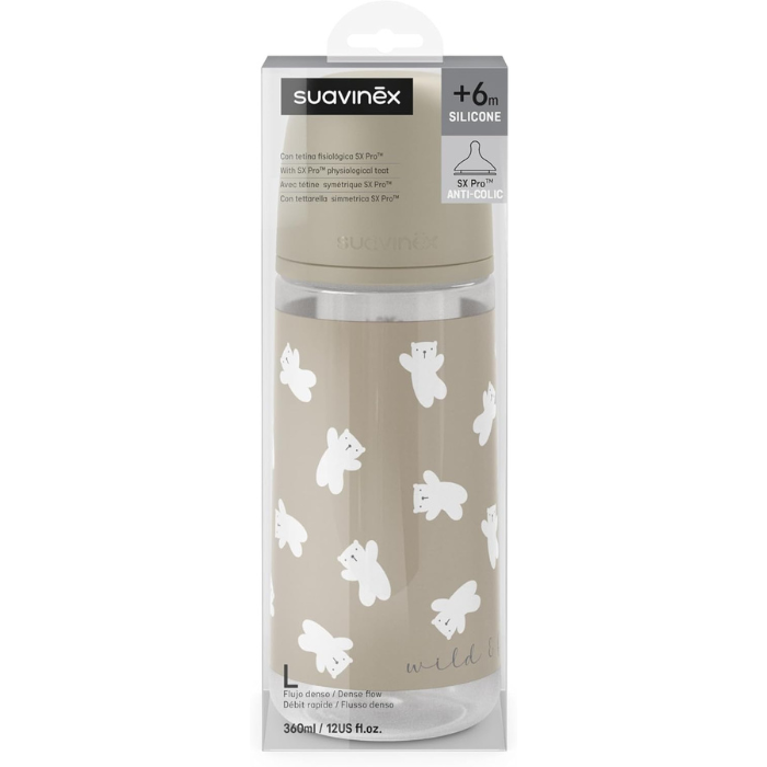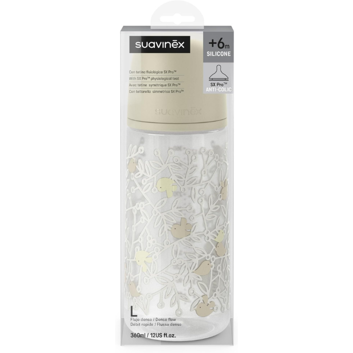 El Biberón Tetina Silicona Fisiológica Suavinex Flujо L 360 ml cuenta con una nueva botella de forma recta que ofrece un agarre más cómodo para el bebé. Con tetina Fisiológica SX Pro™ de flujo denso, a partir de 6 meses, es ideal para bebés mayores o con grandes apetitos, ya que deja pasar papillas muy líquidas. Consultar diseños y colores disponibles al 686714559.