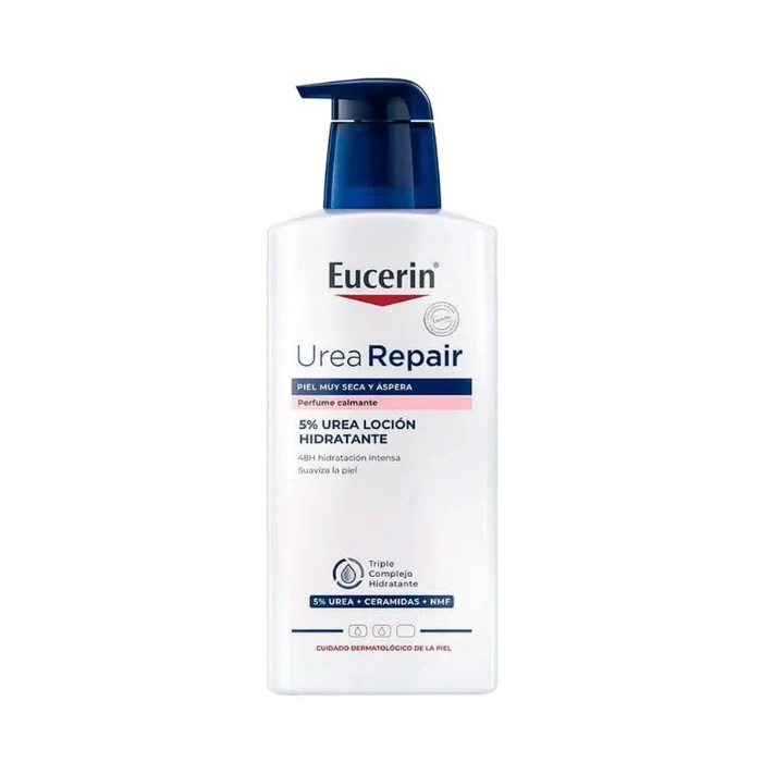 La loción Eucerin Urearepair Plus 5% Urea es un tratamiento especializado para la piel seca y áspera. Formulada con un 5% de urea, este producto proporciona una hidratación intensa y ayuda a restaurar la función barrera de la piel, mejorando su textura y suavidad. Es ideal para personas que sufren de piel muy seca, ya que su acción hidratante alivia la tirantez y la descamación de la piel, logrando un efecto duradero.