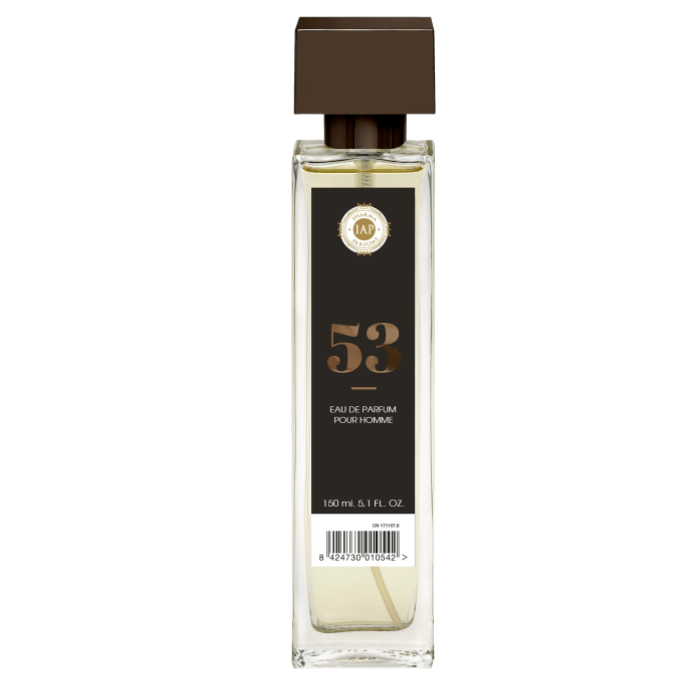 Consigue un aroma sensual y duradero con IAP Perfume Hombre Nº53 150ml. Solución en fragancia elaborada con seductoras notas de aroma amaderado con sándalo. IAP Perfume Hombre Nº53 150ml ha sido elaborado con esmero por una marca líder en perfumes, para que sientas toda la sensualidad de un aroma amaderado que te embriagará a ti y a tus compañeras del día. Esta fragancia es ideal para utilizar durante la transición de las épocas de otoño a invierno, cuando los árboles comienzan a recuperar su tonalidad. Siente las notas frescas, herbáceas, agrestes y naturales, con una ligera base de musgo.