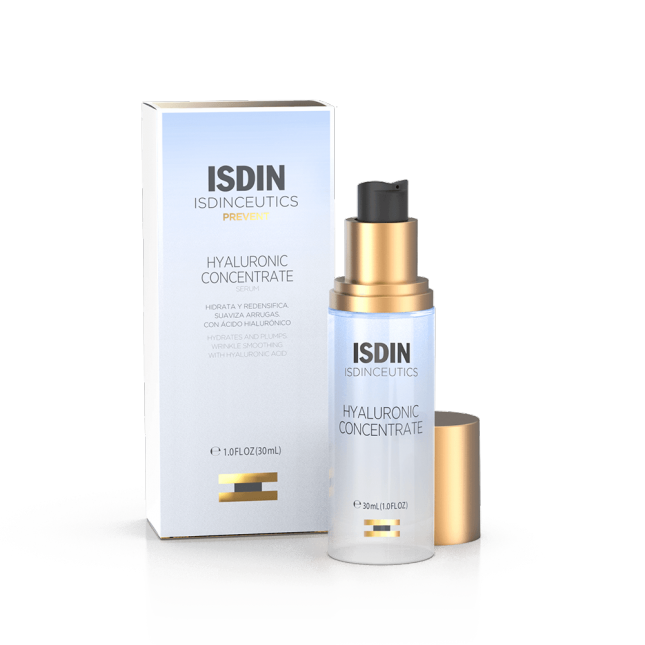 Hyaluronic Concentrate es un sérum facial con ácido hialurónico puro de bajo y medio peso molecular y textura aqua-gel que proporciona una hidratación superficial y profunda. Proporciona una hidratación intensa y ayuda a mantener la función barrera de la piel. Aporta un efecto plump y ayuda a redensificar la piel desde dentro, rellenando las arrugas. Promueve una piel más tersa, firme y mejora el tono y la elasticidad de la piel. Reduce visiblemente el poro y la producción excesiva de sebo, para una tez más uniforme. Ayuda a rellenar la piel y prevenir las primeras arrugas y líneas de expresión, disminuye la apariencia de los poros y aporta luminosidad, para una piel radiante. Ya puedes comprar este sérum de Isdinceutics.