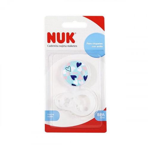 La cadenita chupete Nukete Happy es práctica y cómoda, ya que evita que el chupete se caiga al suelo y se ensucie. Debe sujetarse únicamente a la ropa, pero no a la ropa gruesa, dado que el clip podría deformarse. El broche no debe esterilizarse ni hervirse, ya que el material podría dañarse.
