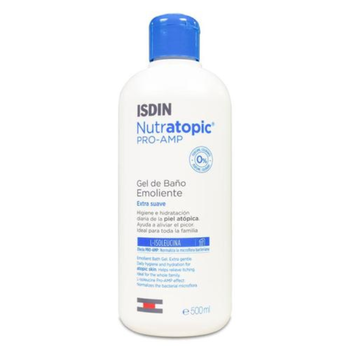 La NUTRATOPIC PRO AMP GEL EMOLIENTE es ideal para la higiene diaria de la piel atópica. Ayuda a reforzar el sistema inmune innato de defensa de la piel. Limpia de forma suave, evitando el picor y la agresión asociados a la higiene de este tipo de piel. Además, hidrata gracias a su muy alto contenido en aceites emolientes. Su formulación con Rhamnosoft inhibe el riesgo de adhesión bacteriana y mantiene el pH de la piel, un factor clave en la prevención de nuevos brotes. Este gel es libre de jabón, conservantes, perfume ni colorantes.