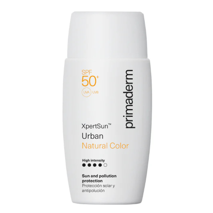 PRIMADERM XPERTSUN URBAN NATURAL COLOR HIGH INTENSITY SPF 50+ es un protector solar innovador diseñado para ofrecer una alta protección contra los efectos dañinos de los rayos UVA y UVB, especialmente formulado para entornos urbanos. Esta crema, con un factor de protección solar de 50+, no solo resguarda la piel, sino que también la embellece con un toque de color, proporcionando un acabado natural y luminoso. Su fórmula ligera y de rápida absorción hace que se adapte perfectamente a la rutina diaria de cuidado de la piel.