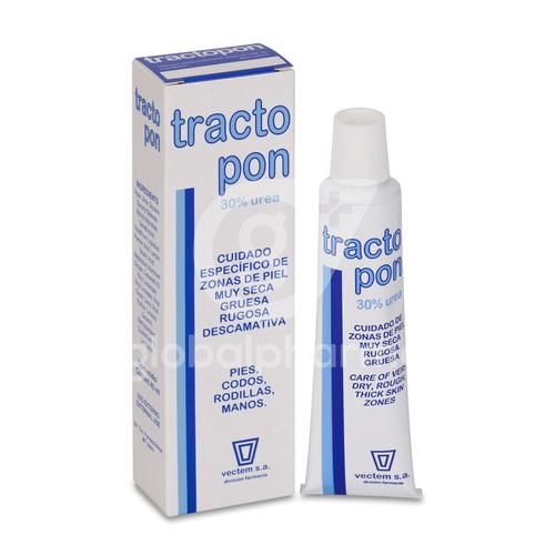 La crema Tractopon 30% Urea está formulada con un 30% de urea y enriquecida con ingredientes emolientes para un tratamiento intensivo de 2 a 3 semanas de pieles muy secas y gruesas (hiperqueratosis severa: engrosamiento de la capa externa de la piel). Es indicada para su uso en talones, plantas de los pies, codos, entre otros. Además, contiene vitamina F y lanolina, que, junto con la urea, se complementan para conseguir dos funciones: